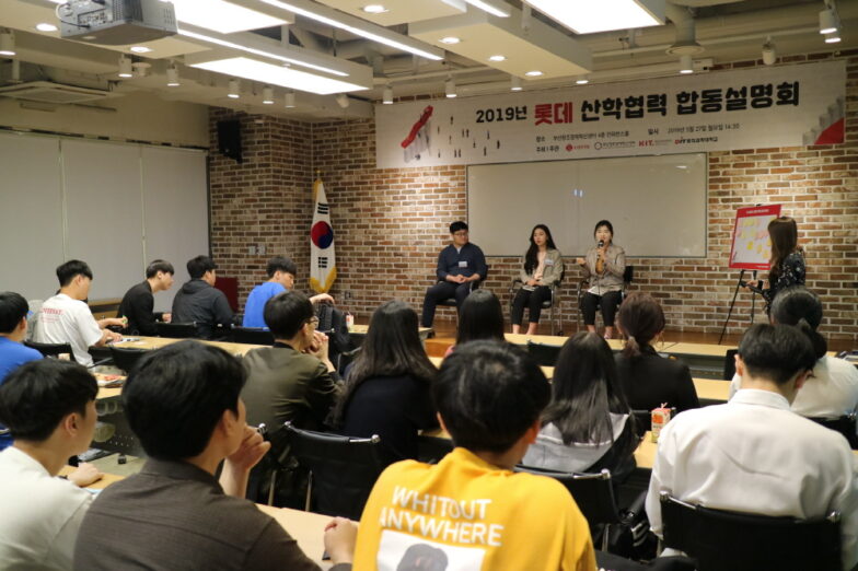 부산창조경제혁신센터가 지난 5월 27일 2019 롯데 산학협력 합동 설명회를 실시했다고 밝혔다. 이번 행사에는 롯데마트와 롯데하이마트, 롯데슈퍼, 코리아세븐이 함께 했고 부산 지역 대학생 60여 명이 참석했다. 이 자리에선 롯데그룹 산학 협력을 소개하는 한편 현장에 참여한 대학생들과 질의응답 시간도 가졌다.