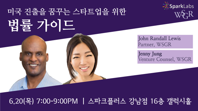 ◇[6월 20일 목] 스타트업을 위한 미국 진출 법률 가이드 = 글로벌 액셀러레이터 스파크랩에서 미국 진출을 꿈꾸는 한국 스타트업을 위한 미국 진출 법률 가이드 세미나를 오는 6월 20일 목요일 스파크플러스 강남정에서 개최한다. 이번 행사는 지난 50년간 구글, 넷플릭스, 서베이몽키, 스퀘어 등 스타트업부터 다양한 글로벌 기업까지 모두 대리하여 자문을 맡아온 국제적인 로펌 Wilson Sonsini Goodrich & Rosati (WSGR) 변호사 John Randall Lewis 와 Jenny Jung 과 함께 스타트업들을 위한 법률 가이드 세션을 진행할 예정이다. 미국 법인 설립 과정, 미국 정부 지원 혜택 자격 요건 취득 방법, 비자 종류별 자격 요건과 취득 관련 정보 등 미국 친출 스타트업을 위한 다양한 세션으로 준비되어 있다. 행사에 대한 자세한 내용과 참가신청은 이곳에서 할 수 있다.