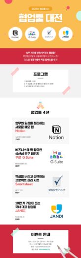 ◇[6월 25일 화] 협업툴 대전: 떠오르는 협업툴 4선= 업무 커뮤니케이션 협업툴 잔디(JANDI)를 제공하고 있는 ‘토스랩’에서 ‘협업툴 대전: 떠오르는 협업툴 4선’ 세미나를 오는 6월 25일 화요일 스파크플러스 강남점에서 개최한다. 이번 협업툴 대전은 ㅿ업무와 일상을 정리하는 새로운 메모 앱 Notion(노션 한국 사용자 모임장 전시진), ㅿ비즈니스에 딱 필요한 생산성 도구 패키지 구글 G Suite(베스핀글로벌 차장 정지찬), ㅿ엑셀을 버리고 선택하는 프로젝트 관리 시트 Smartsheet(와디즈 프로 남상수), 18만 개 기업이 쓰는 국내 대표 협업툴 JANDI(토스랩 매니저 안숙경) 등 협업툴 전문가와 함께하여 각 협업툴 소개 및 활용사례를 이야기할 예정이다. 행사에 대한 자세한 내용과 참가신청은 이곳에서 할 수 있다.