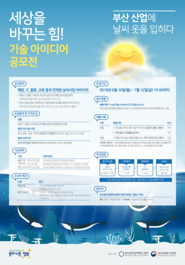 부산창조경제혁신센터가 부산시, 부산지방기상청과 ‘세상을 바꾸는 힘! 기술 아이디어 공모전’을 개최한다고 밝혔다.