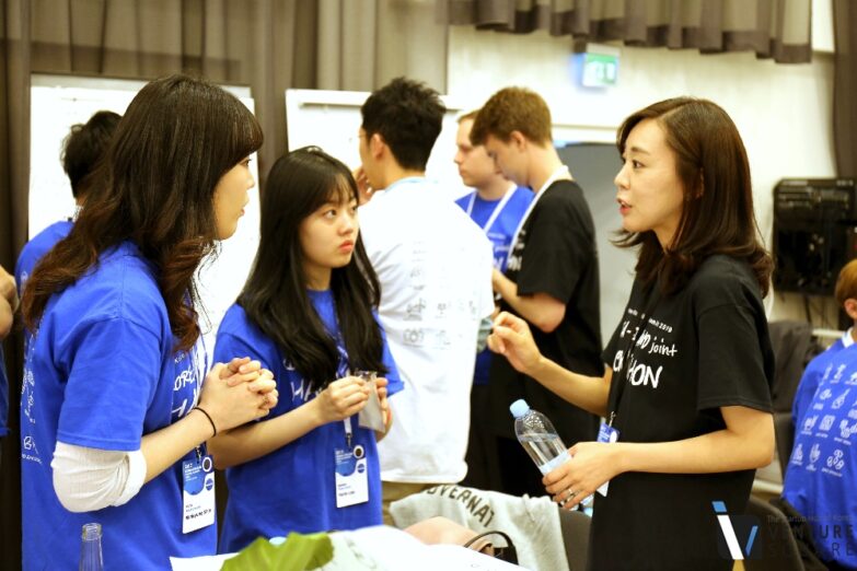 멘토단이 등장하자 여기저기 환호성이 이어졌다. 평소 한 곳에서 보기 어려운 스타트업 대표가 멘토로 한 공간에 섰기 때문. 이수진 야놀자 대표가 “야야야야 야놀자 이수진 대표”라고 자기 소개를 하자 스마트폰 카메라를 든 참가자들 손이 분주히 움직였다. 김미균 시지온 대표가 “여기에서 나이 차이가 제일 적어 가감없는 이야기를 나눌 수 있다”고 말하자 청충 내 미소가 번졌다. 본격적인 한-핀 공동 해커톤에 앞서 10일 열린 사전 오리엔테이션 현장 모습이다.