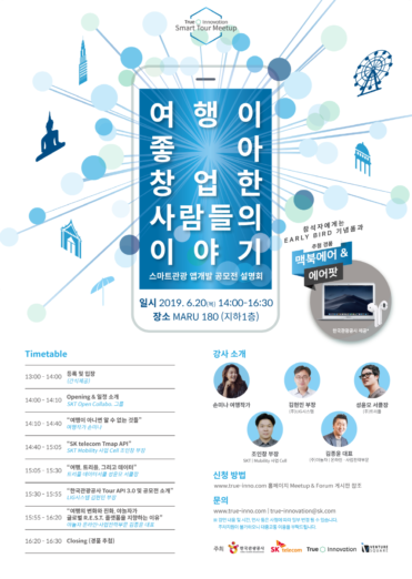 오는 6월 20일 서울 역삼 마루180에서 SK텔레콤 트루이노베이션 스마트투어 밋업이 열린다.