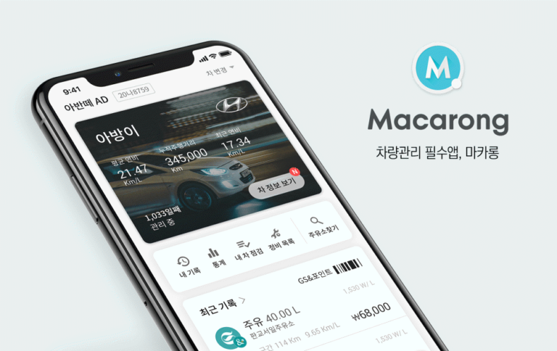 마카롱팩토리는 모바일 자동차 통합 관리 애플리케이션 마카롱을 운영 중이다. 자동 인식한 주유 기록을 통해 평균 연비와 월별 지출, 보험료 내역 등을 한눈에 알 수 있게 해준다. 또 동일 차종 소유주와 소통하며 차량 관리 정보를 얻을 수도 있다.