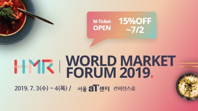 ◇[7월 03일 수요일] = 2019HMR월드마켓포럼 = 한국농수산식품유통공사와 한국HMR협회가 오는 7월 3일부터 4일까지 aT센터에서 그랜드홀에서는 ‘2019HMR 월드마켓 포럼’을 개최한다. 이번 포럼은 ‘모두의 간편식! 주방없는 HMR 레스토랑’을 콘셉트로 열리는 ‘2019 서울 HMR 쿠킹&푸드페어’ 기간 중 개최된다. ‘HMR: 도약, 그리고 세계화의 시작’을 슬로건으로 개최되는 이번 포럼에는 일본(HMR서밋, 이온, 고쿠보, 전농), 미국(슈퍼밸류), 유럽과 함께 국내(롯데마트, 닐슨코리아, 유로모니터, 아워홈 등) HMR 전문가들이 대거 연사로 참여한다.