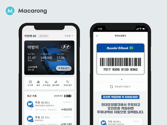 이번 파트너십을 통해 마카롱은 현대오일뱅크 주유 포인트 적립 내역을 자사 앱에 연동, 이용자가 손쉽게 연비와 지출을 파악할 수 있게 했다. 연동된 주유 기록에 기반해서는 평균 연비, 월별 지출, 보험료 내역도 한 눈에 파악할 수 있게 했다. 또 동일차종을 보유한 유저와 소통하며 차량 관리에 필요한 정보도 획득할 수 있다는 설명이다. 지금까지 마카롱에서는 사용자 150만 여명이 차량 관리 데이터 4천만 여건을 등록한 바 있다.
