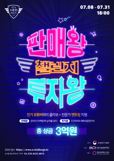 농림축산식품부(이하 농식품부)가 제5회 ‘2019 농식품 창업 콘테스트를 개최한다. 대상은 농식품 분야 7년 이내 창업자다. 이번 콘테스트는 투자 유치형과 마케팅형 두 유형으로 나뉘어 진행된다. 투자 유치형은 창의적 사업 기획과 성장 가능성만으로 어느 팀이 더 많은 투자를 받는지를 겨루는 방식이며 마케팅형은 온라인 홍보와 판매를 통해 어느 팀이 더 많은 판매 수익·판매량을 기록했는지에 따라 승부가 결정된다.