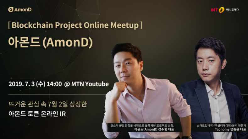 7월 3일 14시 경제방송 MTN 유튜브 채널을 통해 아몬드(AmonD) 블록체인 프로젝트 온라인 밋업이 실시간 방송된다. 2일 아몬드 토큰 공식 상장에 맞춰 진행하는 이번 행사에는 백규리 아나운서가 진행을 맡고 정주형 아몬드 대표와 명승은 티코노미 대표가 참여할 예정.