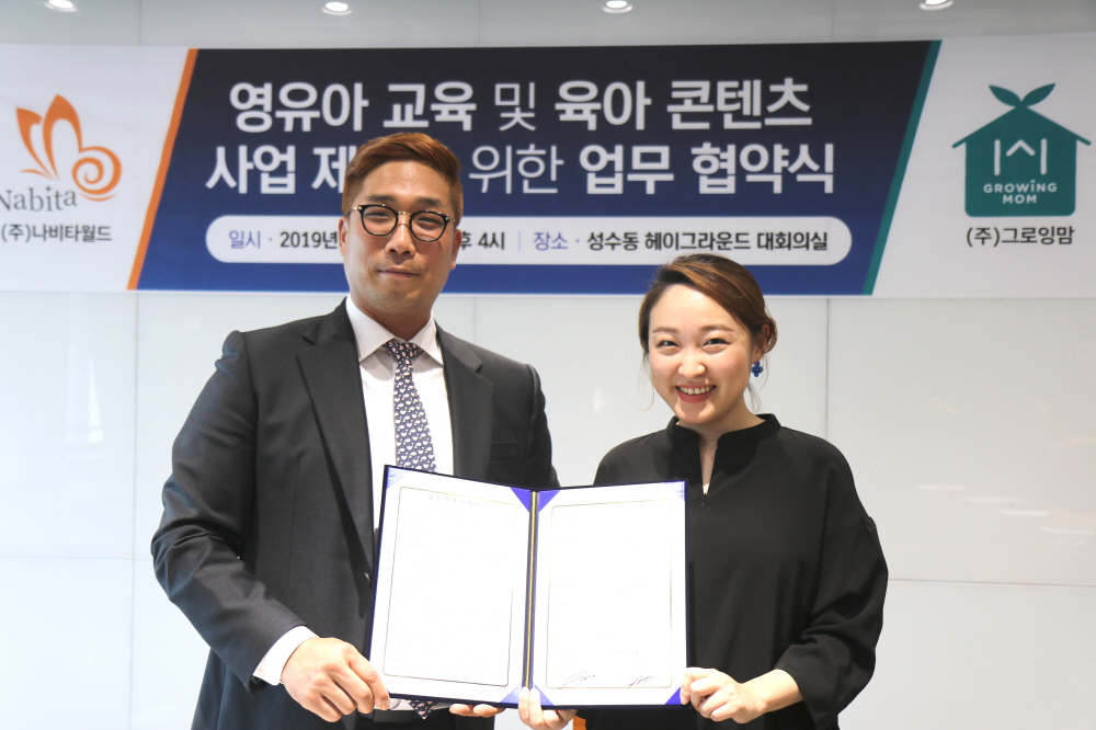 그로잉맘이 나비타월드와 영유아 교육 및 육아 콘텐츠 사업 제휴를 위한 업무협약을 체결했다고 밝혔다.