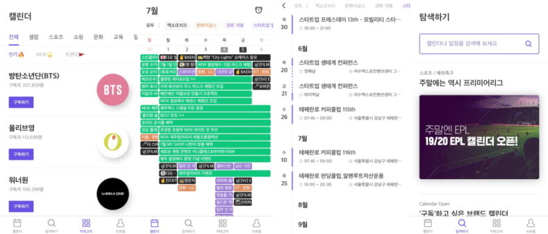 ◇캘린더에 일목요연하게 정리된 덕질라이프 ‘린더‘=제아무리 언제 어디서든 콘텐츠를 볼 수 있는 시대라고 하지만 뒤늦게 흩뿌려진 떡밥을 곱씹는 건 덕후에겐 아쉬운 일. 응원팀의 경기 일정, 내 가수의 스케쥴도 엄연히 ‘나’의 일정 중 하나다. 일정구독 플랫폼 린더는 스포츠 경기, 화장품 세일 정보, 페스티벌, 아이돌 스케쥴 등 필요한 일정을 놓치지 않도록 돕는다. 10가지 카테고리 3천여 개 항목 중 원하는 것을 골라 구독 버튼을 누르기만 하면 캘린더 형태로 일정을 확인할 수 있는 점이 특징이다.