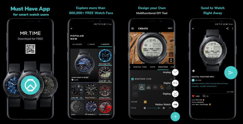 미스터타임은 모바일에서 간단하게 자신만의 스마트워치 페이스를 만들고 공유할 수 있게 해주는 플랫폼.