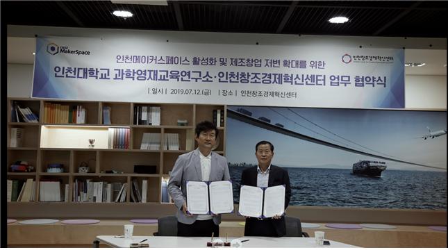 인천창조경제혁신센터가 7월 12일 인천대학교 과학영재 교육연구소와 업무 협약을 체결했다.