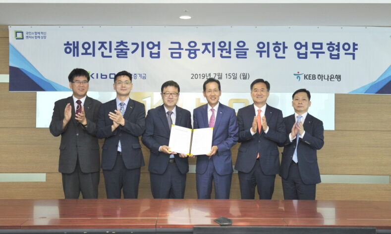 기술보증기금이 KEB하나은행과 손잡고 국내 우수 중소기업의 해외 진출을 돕는다. 7월 15일 하나은행과 해외진출기업 금융지원 업무협약을 맺고 해외진출기업 정보 공유 등 상호간 유기적 협력 체계를 구축하기로 한 것.