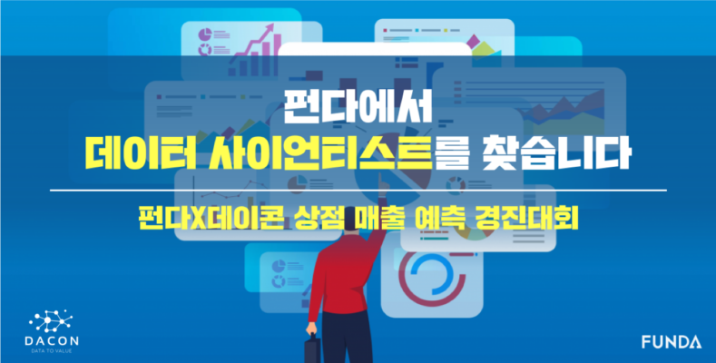 자영업 P2P금융기업 펀다가 데이터 분석 경진대회 전문기업 데이콘과 데이터 사이언티스트 발굴을 위한 상점매출예측 경진대회를 다음달 31일까지 진행한다고 밝혔다.