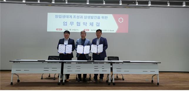 대구창조경제혁신센터가 지난 24일 스포츠와 그룹과 스타트업 투자 유치, 글로벌 진출 지원을 위한 업무 협약을 맺었다.