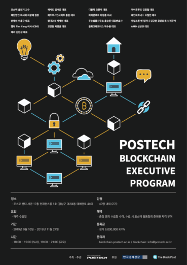 포항공과대학교 정보통신대학원이 8월 23일까지 포스텍 블록체인 최고경영자 과정 2기를 모집한다.