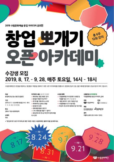 수림문화재단이 창업 뽀개기, 오픈 아카데미를 개설한다.