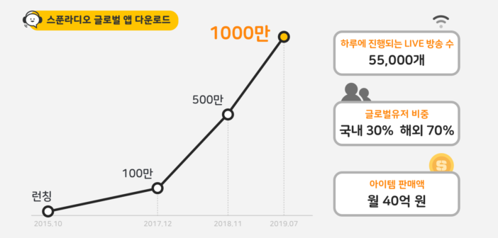 개인 오디오 방송 플랫폼 '스푼라디오'가 누적 다운로드 수1,000만 건을 돌파했다고 2일 밝혔다. 작년 11월 누적 다운로드 500만을 넘어선 이후 약 8개월 만이다. 오디오 유튜브로 불리는 ‘스푼라디오’ 앱은 이용자들이 자유롭게 채널 개설을 통해 누구나 라디오 DJ가 될 수 있다. 하루 평균 개설되는 5만 5,000개 이상의 방송을 통해 청취자들은 각자 원하는 취향과 콘셉의 방송을 듣고 라디오 DJ와 실시간 채팅을 통해 소통할 수 있는 것이 특징이다. 2015년 처음 국내에 선보인 ‘스푼라디오’는 현재 한국, 일본, 베트남, 인도네시아, 사우디아라비아 등 9개 국가에서 서비스되고 있으며 전체 이용자 중 70%가 해외 사용자이다. 특히 지난해 진출한 일본은 한국을 뛰어넘는 빠른 성장세를 보이며 성공적으로 안착했다. 서비스 성장을 통해 월간 아이템 판매액 역시 지난해 동기간 대비 75% 이상 증가한 40억 원(2019년 7월 기준)을 달성했으며 ‘스푼 라디오’를 통해 수익을 창출하는 라디오 DJ들의 평균 수입액도 꾸준히 증가하고 있다. 최혁재 ㈜마이쿤 대표는 "’스푼라디오’는 양방향 소통을 즐기는 Z세대의 콘텐츠 소비 방식에 맞춰 혁신적은 서비스를 위해 노력하고 있다”며 “보다 다양한 장르의 오디오 콘텐츠가 생산될 수 있도록 투자와 지원을 아끼지 않을 것”이라고 계획을 밝혔다. 한편 마이쿤은 아시아 진출에 이어 올 하반기 북미 시장을 시장으로 본격적인 글로벌 시장 확장에 박차를 가할 계획이다.