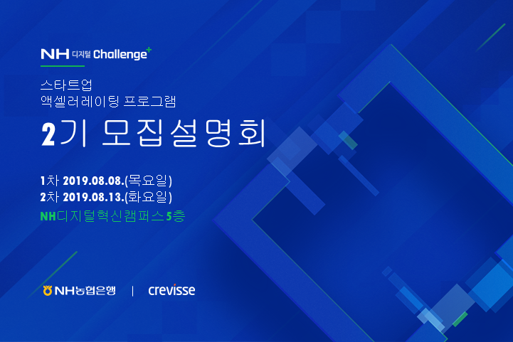 크레비스파트너스가 스타트업 육성 프로그램 NH디지털Challenge+(이하 NH 디지털챌린지플러스) 2기 참가 기업을 30일까지 모집한다고 밝혔다.