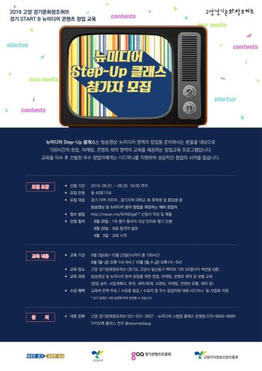 고양 경기문화창조허브가 8월 26일까지 뉴미디어 스텝업(Step-Up) 클래스 교육생을 모집한다.