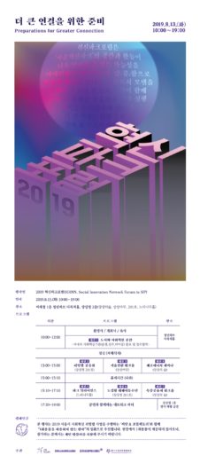 [813일 화] 2019 혁신파크포럼=8월 13일 서울혁신파크에서 전주사회혁신센터, 춘천사회혁신센터, 대만 타이중사회혁신실험기지 등 국내외 대표적인 지역 사회혁신 기관이 모여 2019 혁신파크포럼을 개최한다. 이번 포럼은 ‘더 큰 연결(Preparations for Greater Connection)’을 주제로 도시와 사회혁신 공간, 리빙랩, 기술 전환, 제로에너지, 파크 얼라이언스, 도심형 대체 이동 수단, 옥상 공유지 등 7개 주제로 워크숍을 진행한다. 대만 타이중 사회혁신 실험기지(센터장 제시 장), 네덜란드 옥상 단체이자 ‘유럽옥상네트워크’를 운영 중인 로에프(암스테르담 활동 단체)의 렘코 모엔 마칼(옥상프로젝트 리더), 다겐다젠(로테르담 활동 단체)의 레온 반 게스트(옥상프로그램 디렉터)가 참여한다. 또 이번 포럼에서는 지역 거점 혁신 기관들이 연대를 통한 네트워크 확장과 사회혁신 분야의 실험적 역할 수행을 약속하고 공동 선언하는 자리가 될 예정이다. 행사에 대한 자세한 내용과 참가 신청은 이곳에서 할 수 있다.