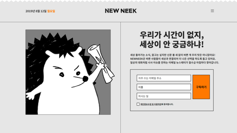 뉴닉은 밀레니얼 세대를 대상으로 대화체로 구성된 뉴스 콘텐츠를 이메일을 통하여 전달하는 미디어 회사다. ‘우리가 시간이 없지, 세상에 관심이 없냐!’는 슬로건을 내걸고 이메일이라는 소외받던 채널에서 젊은 세대의 호응을 이끌고 있다. 뉴닉은 정식으로 뉴스레터를 발행한 지 8개월 만에 약 6만5천 명의 구독자를 모았고 약 50%에 이르는 높은 이메일 오픈율을 기록하고 있다.