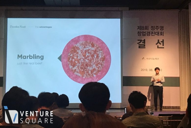 이어서 2부에서 만난 8팀 중에는 식물성 대체 식품을 개발한 ‘디보션푸드’가 관심을 끌었다. 디보션푸드는 식품 공학, 분자요리, 영양학, 조리과학 기술을 이용해 GMO 공법과 식품 첨가물을 배제한 건강한 대체육을 연구한다. 원천기술을 위해 1년 6개월간 연구를 거듭했으며 이를 바탕으로 실제 고기와 동일한 단백질 함량, 갈변 효과, 육즙을 갖지만 콜레스테롤 함량은 0%로 낮춘 대체육을 개발했다. 가격 경쟁력과 국내 생산 역시 디보션푸드 팀이 강조하는 차별점. 1kg당 13,000원 가량 판매가를 책정했으며 냉장 유통으로 품질 보존까지 고려했다는 설명이다. 뒤이어 발표한 7팀 중에서는 다음 3팀을 소개하고자 한다.