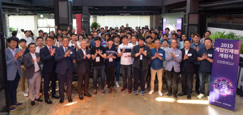 한국콘텐츠진흥원이 게임 산업 전문 인력 교육 과정인 게임인재원을 설립하고 26일 개원식을 열었다. 이 자리에는 1기 교육생 65명과 전임교수, 운영위원회 위원 등 100여 명이 참석했다.