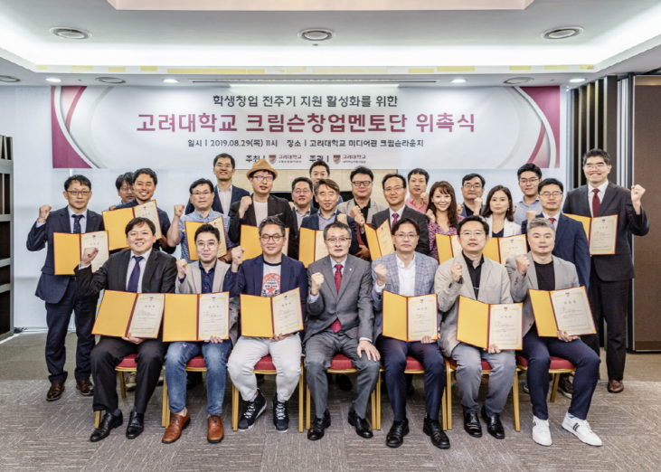 이 날 행사에선 크림슨창업멘토단 출범을 알리는 위촉식도 열렸다. 고려대는 창업전문가 50명을 선정해 멘토단으로 위촉했다. 위촉식에는 나눔엔젤스 엄철현 대표, 삼성벤처투자 변성식 책임 등 24명이 참석했고 이진한 고려대 연구부총장이 위촉장을 수여했다.
