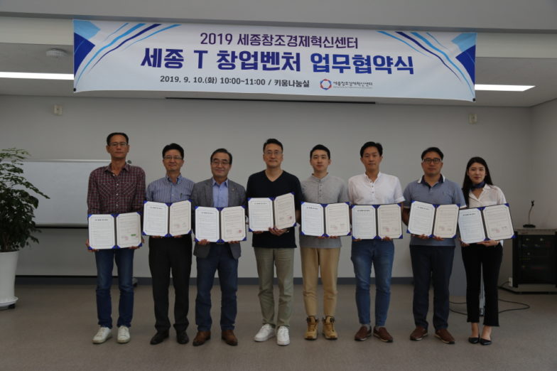 세종창조경제혁신센터(이하 세종혁신센터)는 세종 T 창업벤처 육성 프로그램을 시작하며 올해 지원기업 10개사와 협약을 맺었다고 11일 밝혔다.
