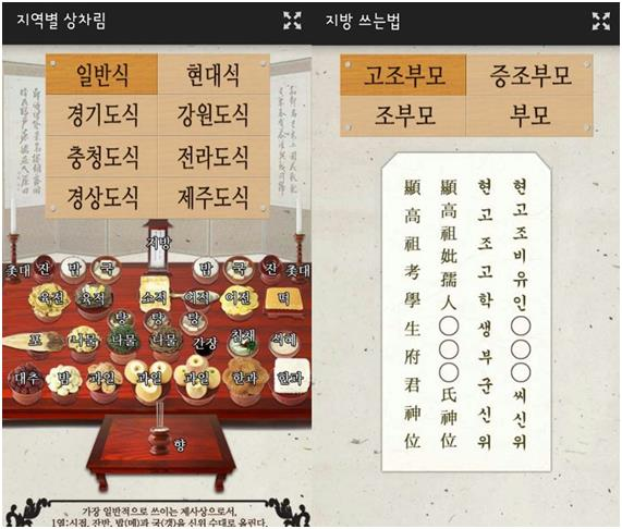 ◇ 차례상 정보 종결앱 ‘제사의 달인’=어떤 과일을 어디에 올려야 하고 할머니가 좋아하셨던 음식은 또 언제 올려야 하는지. 제사의 달인은 꼭 필요한 상 차리는 방법과 지역별 특징, 지방 쓰는 법을 간단하고 쉽게 정리한 앱이다. 구글플레이