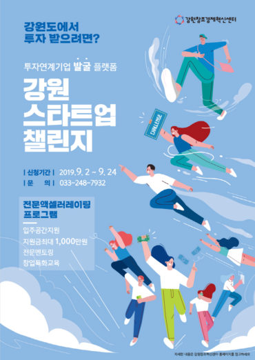 강원창조경제혁신센터가 9월 24일까지 2019 하반기 강원 스타트업 챌린지 참가자를 모집한다.
