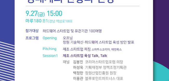 코리아스타트업포럼(이하 코스포)이 기술혁신·제조 스타트업 생태계 컨퍼런스 ‘제조 스타트업 생태계의 현황과 전망’을 27일 마루180에서 개최한다. 창원시와 공동으로 주최하는 이번 컨퍼런스는 ▲창원의 기술혁신 하드웨어 스타트업 육성방안 발표 ▲하드웨어 스타트업 피칭 ▲패…