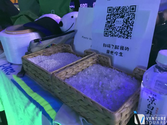 “플라스틱 수명은 450년, 우리가 죽어도 플라스틱은 남는다” 슬러시 상하이, 스타트업 80 여곳과 22개 파트너사 기업이 부스를 꾸리고 참관객과 만났다. 100여 곳 중 유독 참관객 발길이 끊이지 않았던 곳은 플라스틱을 소재로 참가한 스타트업 부스였다. 부스들은 각 리사이클링 체험, 전시 감상, 교육 등 플라스틱 재활용 전반을 경험할 수 있도록 꾸려졌다.