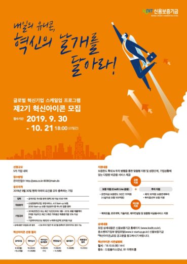 ◇[10월 8일 화요일] = 신용보증기금 제2기 혁신아이콘 설명회 = 신용보증기금은 혁신아이콘 제2기 선정을 위한 기업 공개 모집을 다음달 21일까지 진행한다고 밝혔다. ‘혁신아이콘 지원 프로그램’은 우수 중견기업 혹은 글로벌 혁신기업으로 성장가능한 스타트업을 발굴해 최대 100억 원까지 지원하는 스케일업 프로그램이다.