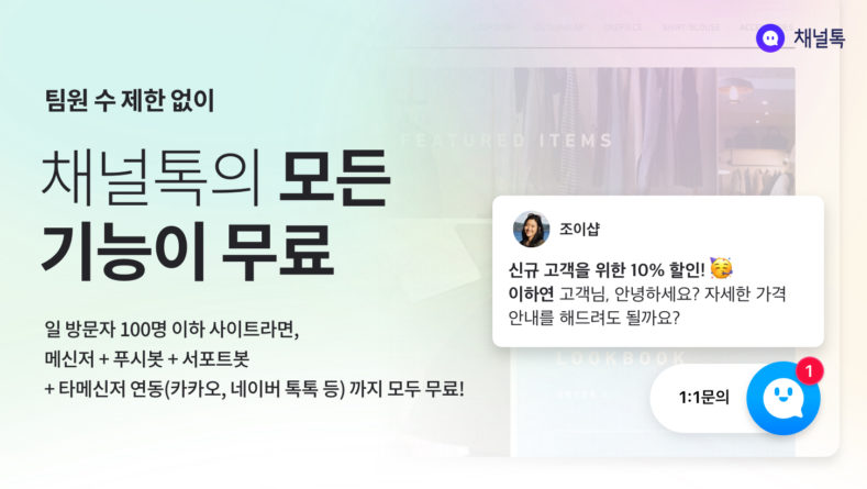 고객 메신저 채널톡이 홈페이지 하루 방문객 100명 이하인 초기 온라인 사업자를 위한 완전 무료 가격 정책을 발표했다.