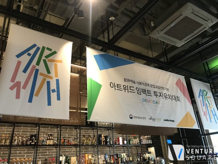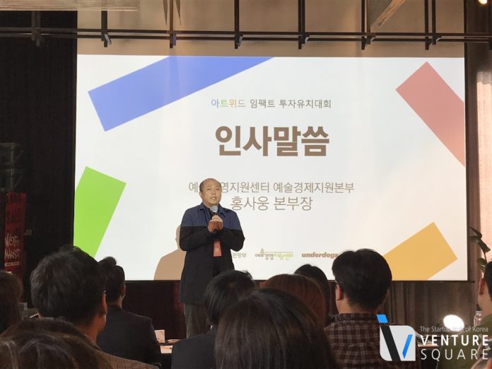 “차세대 사회혁신을 미리 보려면 지금의 예술 무대를 보라”홍사웅 예술경영지원센터 본부장이 아트위드 임팩트 투자유치대회 시작을 알렸다. 16일 성수동 우란문화재단에서 열린 임팩트 투자유치 대회는 12주간 이어진 문화 예술 분야 문제 해결 과정을 마무리하는 자리로 마무리됐다. 대회에 참가한 12팀은 문화체육관광부 산하 예술경영지원센터와 언더독스가 진행한 아트위드 교육 프로그램에 참가해 예술 분야 문제 해결책을 발굴하고 비즈니스 모델을 구체화했다.