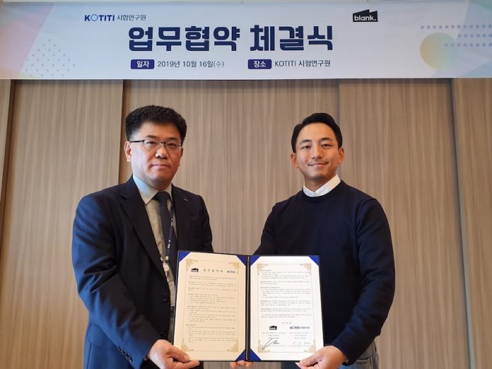 블랭크코퍼레이션은 국가공인시험기관 코티티(KOTITI) 시험연구원과 전략적 업무협약을 맺고 자사 브랜드 제품 품질강화를 위한 협업 프로세스를 도입한다고 18일 밝혔다.