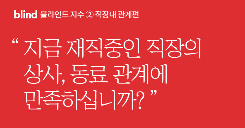 직장인 커뮤니티 앱 ‘블라인드’를 운영하는 팀블라인드는 국내 직장인 직장내 관계 만족도가 평균 55점이라고 오늘 밝혔다.