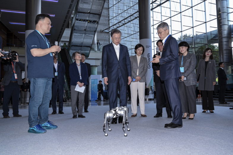 문재인 대통령이 10월 28일 네이버가 개최한 개발자 행사인 데뷰 2019 콘퍼런스에 참여했다. 문 대통령은 기조연설에 나서 “인공지능은 산업을 혁신하며 일상 생활을 변화시키고 과학기술의 진보를 넘어 새로운 문명으로 우리에게 다가오고 있다”며 “인공지능은 인류의 동반자로 인끊임없이 부족함을 보완해 더 완전해지려는 인류의 꿈이 만들어낸 결과”라고 강조했다.
