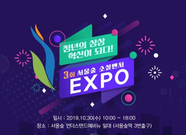 성동구가 30일 서울시 성동구 언더스탠드에비뉴 일대에서 제3회 서울숲 소셜벤처 엑스포 소셜벤처 다 같이(多價値) 페스티벌을 개최한다. 지난 2017년 처음으로 개최된 소셜벤처 엑스포는 정부 일자리위원회가 소셜벤처 이슈화를 통해 성수동 일대를 소셜벤처허브로 육성하겠다는 정책을 추진하기 위해 마련됐다.