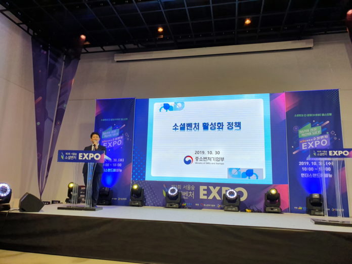 “소셜벤처는 하이리스크 로우리턴이라는 생각이 깔려있다. 벤처기업처럼 소셜벤처도 하이리스크 하이리턴을 만들 수 있도록 정부 지원 정책의 방향을 설정했다.” 최원영 중소벤처기업부 벤처혁신정책과 과장은 30일 서울 성수동 언더스탠드애비뉴에서 열린 서울숲 소셜벤처 엑스포 컨퍼런스에서 소셜벤처 정책 현황과 향후 계획을 소개했다.