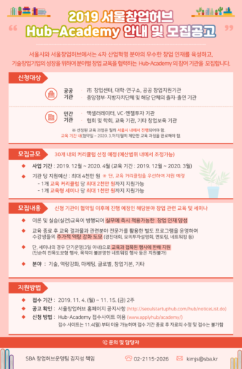 서울창업허브, 허브 아카데미 참여 기관 모집