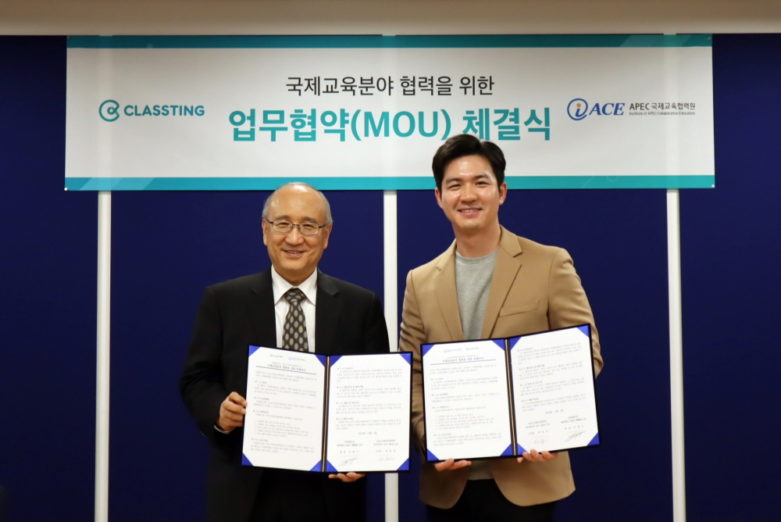 박동선 APEC국제교육협력원 이사장은 “APEC국제교육협력원이 그간 쌓아 온 국제교육협력 분야의 경험과 노하우를 글로벌 에듀테크 스타트업인 클래스팅과 협업을 통해 국제 사회의 교육 정보화 격차 해소, 교육 발전을 위해 공동의 노력을 펼칠 예정”이라고 전했다.