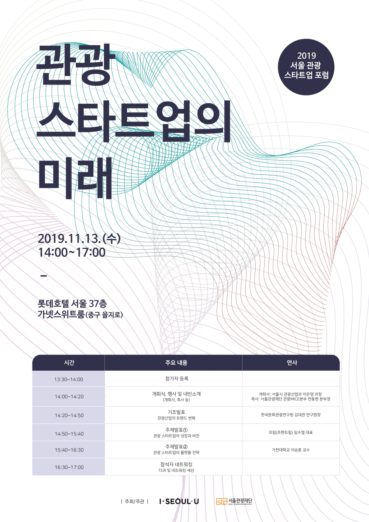 [11 13 수요일] 2019 서울 관광 스타트업 포럼 = 서울특별시와 서울관광재단, 액셀러레이터 탭엔젤파트너스가 오는 13일 서울 중구 롯데호텔 서울에서 서울 관광 스타트업 포럼을 개최한다. 포럼은 ‘관광 스타트업의 미래’를 주제로 관광 산업 전반적인 트렌드 변화, 관광 스타트업 성장과 비전, 관광 스타트업에서 활용할 수 있는 플랫폼 전략을 이야기할 예정이다. 이번 포럼은 예비 창업가, 창업 관계자, 관광산업 종사자, 학생, 투자자, 교수, 연구원을 포함해 관광 스타트업과 산업에 관심있는 모든 이를 위해 준비한 자리다. 서울시 관광산업과 이은영 과장이 개회사를, 서울관광재단 관광MICE본부 변동현 본부장이 축사로 행사를 열고 ㅿ김대관 한국문화관광연구원장이 ‘관광산업의 트렌드 변화’ 기조발표 ㅿ임수열 프립 대표가 ‘관광 스타트업의 성장과 비전’ ㅿ이승훈 가천대학교 교수는 ‘관광 스타트업의 플랫폼 전략’을 발표한다. 참석자간 네트워킹 시간도 마련될 예정이다. 자세한 내용과 참가신청은 이곳에서 할 수 있다.