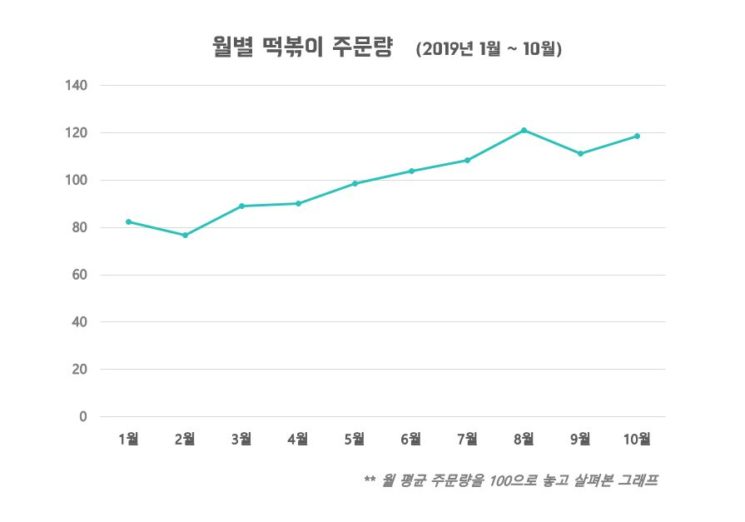 배달의민족을 서비스 중인 우아한형제들이 1∼10월 떡볶이 주문 데이터를 분석한 결과를 공개했다.