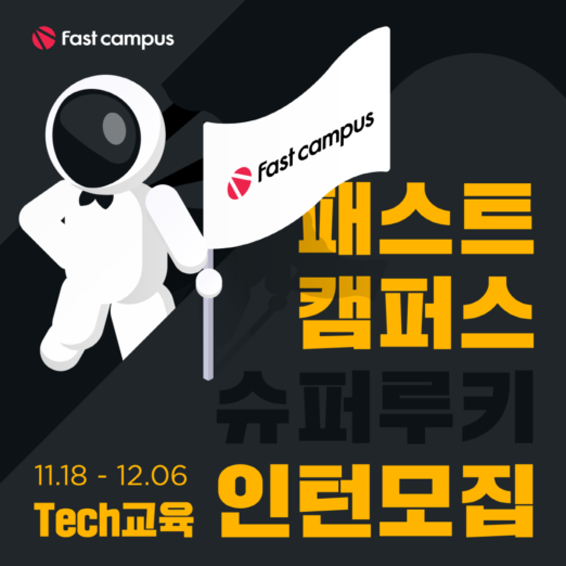 패스트캠퍼스가 12월 6일까지 프로그래밍과 데이터 사이언스 등 테크 교육 분야 실무 경험을 위한 동계 인턴십 슈퍼루키를 모집한다고 밝혔다.