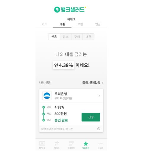 뱅크샐러드가 앱에서 개인 맞춤별 최저금리 대출 상품을 매칭하는 신규 대출 서비스를 선보인다고 18일 밝혔다.