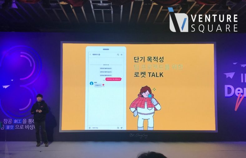뒤이은 발표에서는 플랫폼 기업이 다수 등장했다. 첫째로 프로젝트를 위한 단톡 ‘로켓 톡’, 인원모집을 위한 ‘로켓 기지’, 프로젝트 전반 관리를 위한 ‘로켓 비즈’를 운영하는 마이크로프트가 있다. 로켓 톡은 사생활과 분리된 업무용 메신저, 고객사와 커뮤니케이션 같은 친숙하지 않은 단기 프로젝트를 위한 메신저를 목표 포지션 삼는다. 로켓 비즈와 로켓 기지를 통한 프로젝트 관리자 모드와 로켓 인력수급 기능을 차별점으로 내세우며 이번달 로켓톡 베타서비스를 시작, 내년 상반기 5만 명 사용자 확보 계획을 마련했다.
