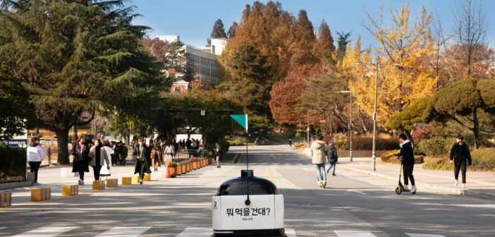 우아한형제들이 건국대학교 서울 캠퍼스에 자율주행 배달로봇 5대를 배치하고 11월 25∼12월 20일까지 캠퍼스 로봇 배달 시범 운영에 나선다. 캠퍼스 로봇 배달은 교내에서 배달의민족 앱으로 주문을 하면 자율주행 배달 로봇 딜리가 주문자 위치까지 음식을 나르는 무인 배달 서비스. 건국대 9개 장소에 위치한 배달로봇 정류장에서 주문자는 앱으로 QR코드를 찍어 매장 목록을 확인하고 메뉴를 골라 결제하면 된다. 주문 접수가 끝나면 알림톡으로 알려주며 딜리가 오는 과정을 실시간으로 확인할 수 있다. 정류장에 도착하면 주문자에게 도착 알림도 보낸다. 딜리는 바퀴 6개로 주행하고 라이더 센서로 장애물을 감지한다. 속도는 4∼5km/h이며 한 번 충전하면 8시간 주행할 수 있다. 본체에 라이트를 달아 야간 주행도 할 수 있다. 한꺼번에 음료 12잔 또는 샌드위치 6개를 배달할 수 있다. 캠퍼스 로봇 배달 입점 음식점은 건국대 교내에 있는 주니아서브, 김밥천국, 포르스 3곳이다. 운영시간은 9∼18시다. 최고 주문 금액 없이 김밥 한 줄도 배달시킬 수 있으며 배달비는 무료다. 시범 운영 기간 중 주문자에게는 매일 3,000원 할인 쿠폰도 제공한다. 김요섭 우아한형제들 로봇딜리버리셀 이사는 “캠퍼스 로봇 배달은 학생들에게 자율주행 배달로봇을 앞서 이용하는 경험을 선사하고 음식점주에게는 가게 운영 효율성을 제공하는 프로젝트”라며 “앞으로 서비스를 확대하면 이용자는 더 편리한 언택트 배달 서비스를 누리고 음식점은 로봇 배달을 통한 추가 매출 기회를 얻을 것”이라고 밝혔다.