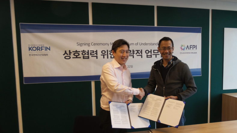 한국핀테크산업협회가 인도네시아 핀테크금융협회 AFPI와 MOU를 체결했다고 밝혔다.